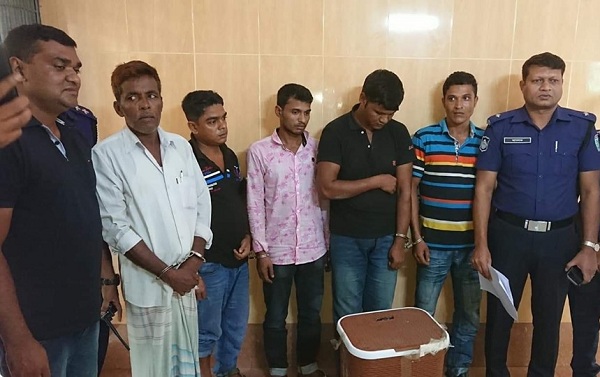 রোববার রাতে শহরতলীর শান্তিবাগ এলাকা থেকে প্রানীটি উদ্ধারের পর ৫ জনকে আটক করা হয়। আটককৃতরা হলেন- মো. মোশাহিদ মিয়া (৩৫), আলি হাসান মাসুক(৩০), অাব্দুল ছালাম (৫৫), মো. অাফরোজ মিয়া(৩৫) ও মো: কাউছার মিয়া (২৪)।