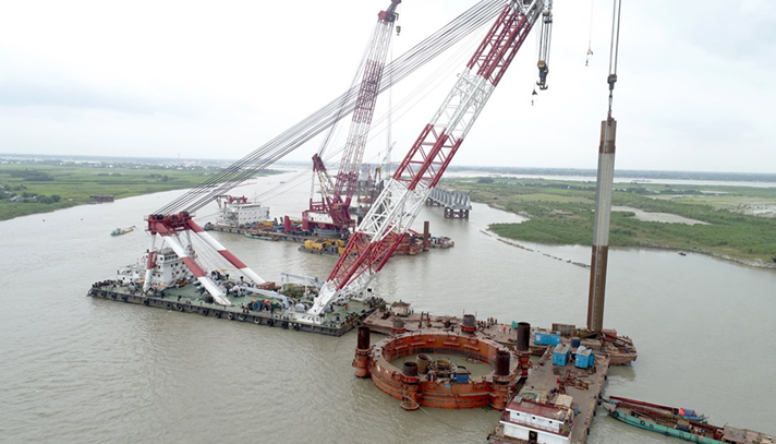 গত বছরের শেষ দিকে নকশা পুনর্বিন্যাস করার পর দ্রুতগতিতে পদ্মার বুকে বসতে থাকে একের পর এক পাইল।