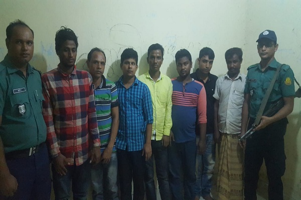 আটককৃতরা হচ্ছেন- শামীমাবাদ এলাকার প্রয়াত রমিজ আলীর ছেলে শের আলী (৪৫), বিশ্বনাথের শিমুলতলা গ্রামের রইছ আলীর ছেলে দেলায়ার হোসেন (২৬), দিরাইয়ে রাজনগর গ্রামের কাশেম আহমদের ছেলে তুহিন আহমদ (২০), শেরপুর জেলার নকলা উপজেলার চর ভাবনা গ্রামের প্রয়াত সাহেব আলীর ছেলে আনছার উদ্দিন (২৯), হবিগঞ্জের চুনারুঘাট উপজেলার বড়দেশ গ্রামের মর্তুজ আলীর ছেলে সবুজ মিয়া (২৬), সিলেট সদরের টুকেরবাজার গ্রামের প্রয়াত আফরোজ আলীর ছেলে ইয়ামিন আহমদ (৩৪) ও জৈন্তাপুর উপজেলার বীরখাই গ্রামের প্রয়াত শহর উল্লাহর ছেলে কামরুল হাসান (২৮)।