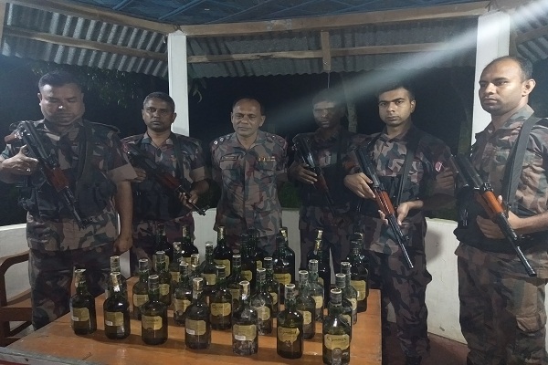 বৃহস্পতিবার (১ আগস্ট) ভোর রাতে মনতলা সীমান্ত ফাঁড়ির সুবেদার দেলোয়ার হোসেনের নেতৃত্বে বিজিবির একটি টহল দল উপজেলার সাহেবনগর এলাকায় অভিযান চালিয়ে ৩৩ বোতল ভারতীয় মদ উদ্ধার করেন।