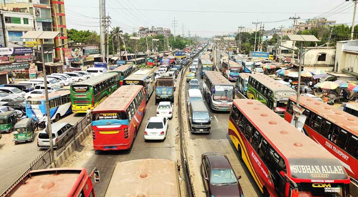 নয়ন চন্দ্র দাস নামে এক যাত্রী পায়ে হেঁটে রওনা করেছেন। তিনি বলেন, “সড়কে অনেক যানজট। গাড়ি একেবারে চলে না বললেই চলে। এ কারণে রওনা দিয়েছি।”