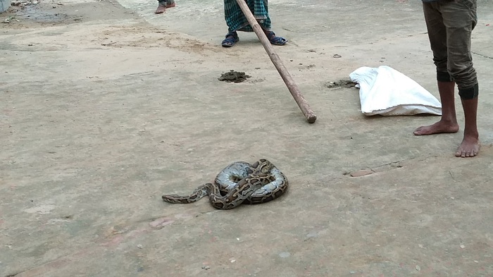 এ খবর পেয়ে বাংলাদেশ পরিবেশ আন্দোলন, সিলেটের সাধারণ সম্পাদক আব্দুল করিম কিম ইফতারের কিছু সময় পূর্বে ঘটনাস্থলে পৌঁছে শ্রমিকদের থেকে সাপটিটি গ্রহণ করে বিভাগীয় বন কর্মকর্তাকে জানান| পরে টিলাগড় ইকোপার্কের বিট অফিসার চয়নব্রত চৌধুরীর কাছে অজগরটিকে হস্তান্তর করা হয়|