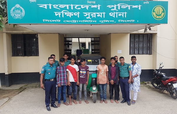 আটককৃতরা হলেন- মোঃ জাকারিয়া (২১), পিতা-আবুল হোসেন, তুষার আহমদ (২০), পিতা- সুহেল আহমদ, সাগর আহমদ (১৮), পিতা-মঈনউদ্দিন খাঁন, ছুফায়েল আহমদ (১৯), পিতা-ফজলুল হক এবং খোকন আহমদ আব্দুল্লাহ (১৮), পিতা-মোঃ লায়েছ মিয়া। এসময় তাদের কাছ থেকে ডাকাতির কাজে ব্যবহৃত চাকু, রুমাল ও গামছা জব্দ করা হয়।