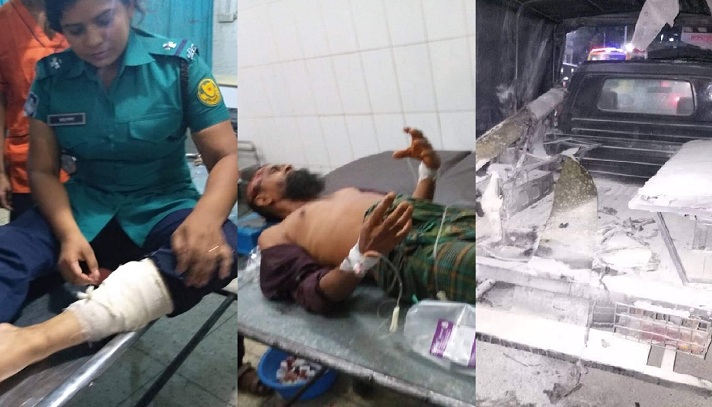 আহত পুলিশের ওই নারী কর্মকর্তার নাম রাশেদা আক্তার বাবলী (২৮)। বিস্ফোরণে বাম পায়ে মারাত্মক আঘাত পেয়েছেন তিনি। পুলিশের গাড়িটিও ক্ষতিগ্রস্ত হয়েছে।